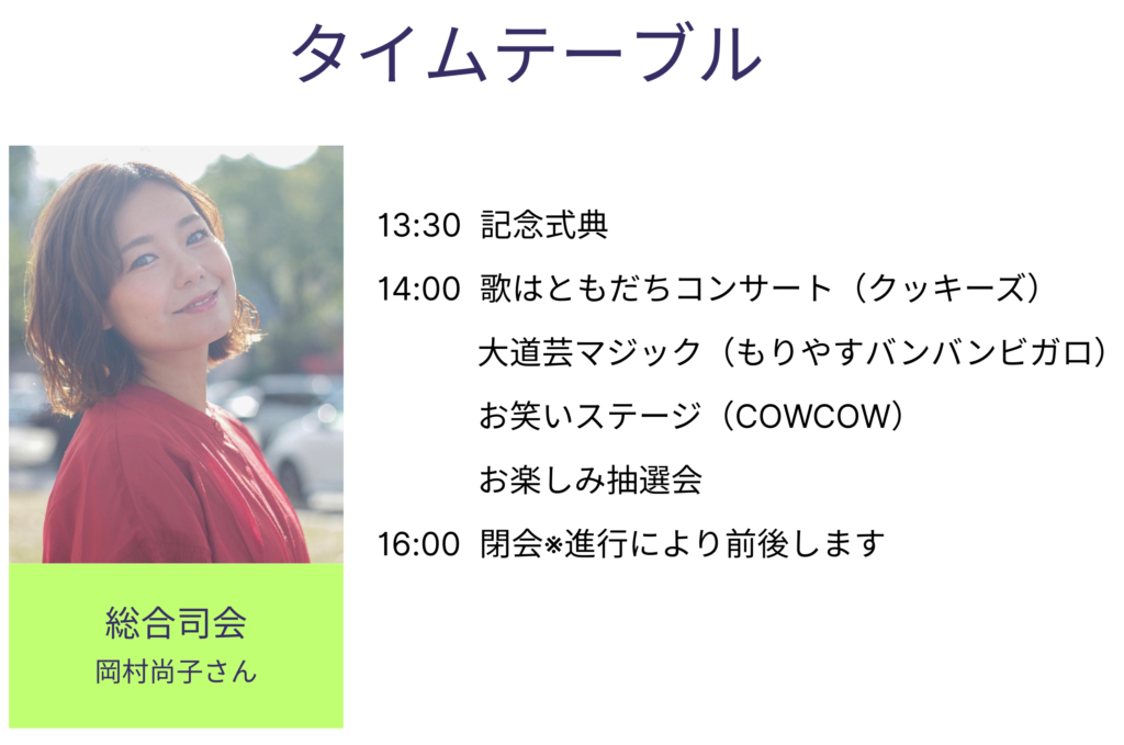 当日は記念式典に加え、豪華出演者のステージをお楽しみいただけます。