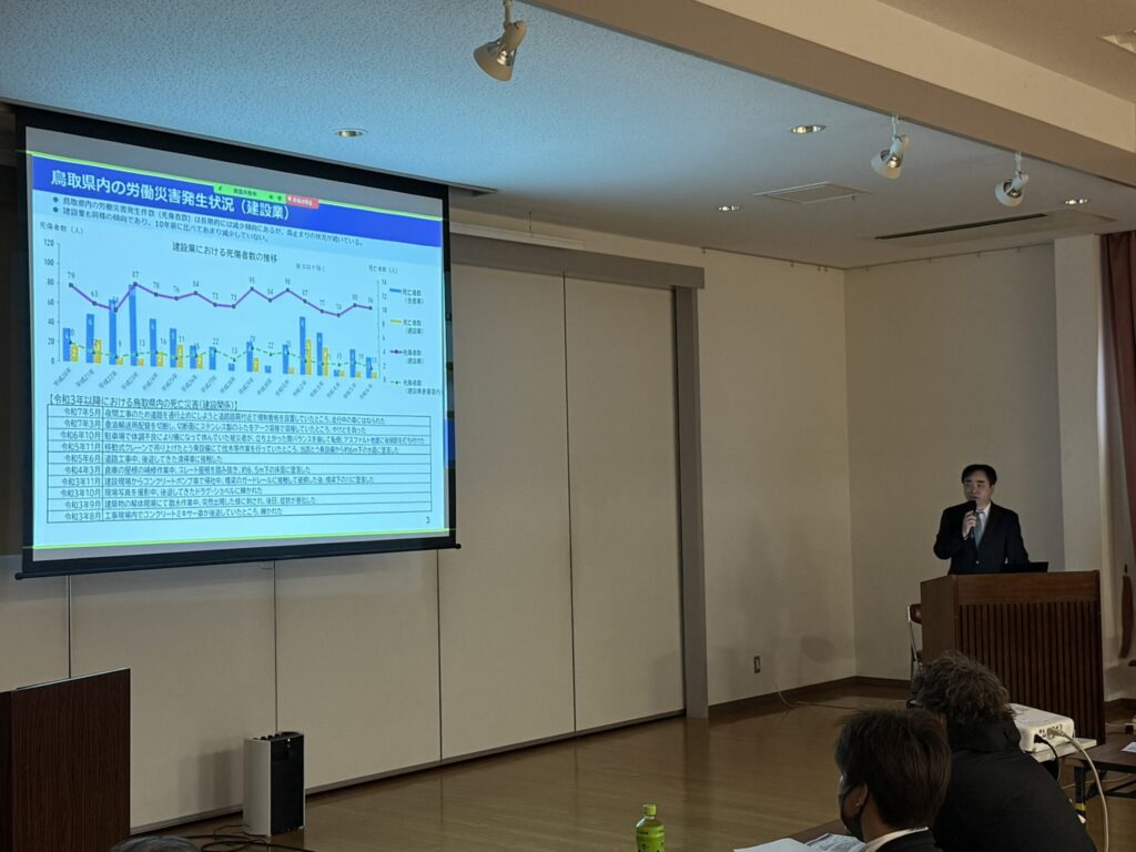 また今回は、倉吉労働基準監督署より講師をお招きし、「最近の労働災害について」の講演を実施いただき、事故の傾向や予防のポイントについて学ぶ機会となりました。
